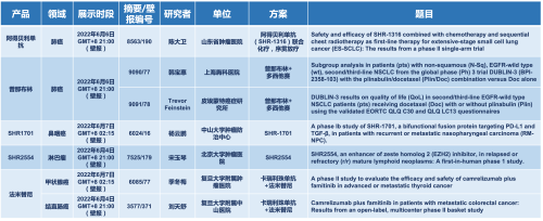 2022 ASCO年会另有5款恒峰g22医药上市前抗肿瘤创新药的相关研究被接收为壁报,包括SHR-1316、普那布林、法米替尼、SHR-1701和SHR2554,他们的单药或联合方案相关7项研究被接收为壁报,覆盖肺癌、鼻咽癌、淋巴瘤、甲状腺癌和结直肠癌等领域。